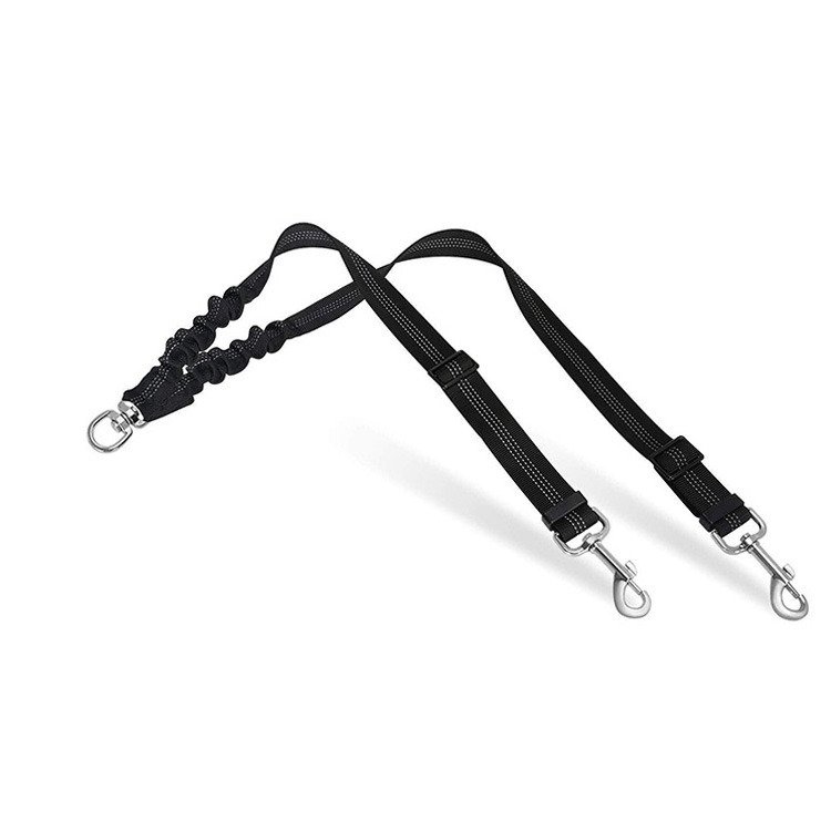 Adjustable Length --- With buckle on the straps and the elastic bungee inside; this dual dog leash can be adjusted from 18 inches to 24 inches. Good adjustable length so the dogs can get themselves comfy without restricting themselves; suitable for all medium and large dogs combination.