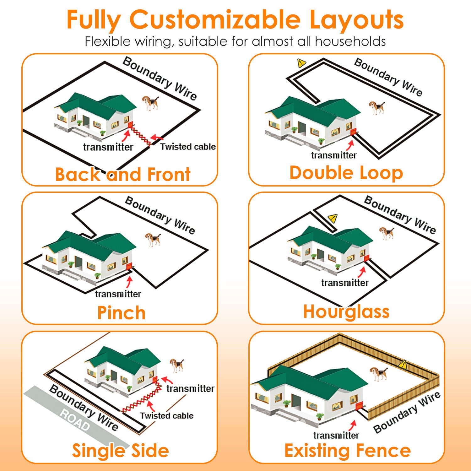 *Self-made Boundary Area*:with our 984 feet boundary wire,you can freely set an enclosed space in the yard for your dog to ensure its safety.