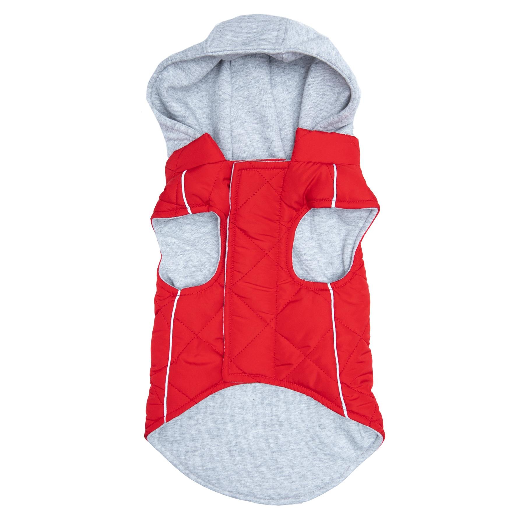 Our Flannel Weekender Sweatshirt Hoodies are great for pups on the go! The outer shell is a soft plaid flannel while the inner lining is cozy, jersey material. The hood is also made of jersey material and can easily zip off when not needed. Reflective stripping makes your pup noticeable in low light while the two-inch fastener down the chest provides an adjustable closure.