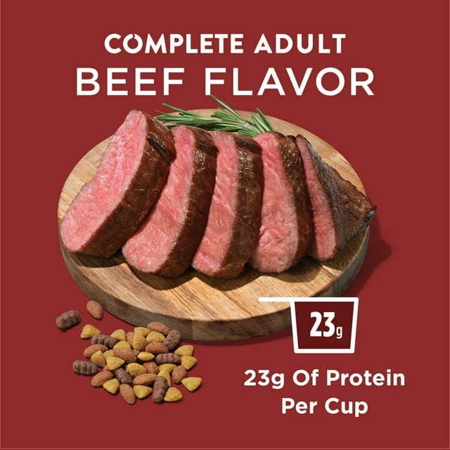 Purina Dog Chow Complete Adult Beef Flavor dog kibble contains 23 essential vitamins and minerals
